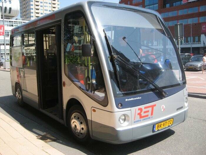 De RET heeft een tijd een buslijn van 552 meter lang gehad: lijn 60 tussen Wilhelminaplein en de Wilhelminapier. In de laatste jaren werd daar dit busje ingezet, wat de eerste volledig elektrische bus van de RET was. Hier zien we lijn 60 op 15 juli 2011 op de Wilhelminapier.