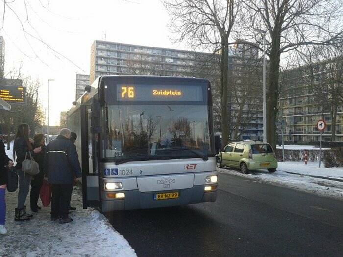 Op 9 december 2012 ging de nieuwe dienstregeling in, waarbij de RET alle lijnen van QBuzz over nam. Ook de bussen gingen naar RET, waardoor deze nu ook op de 'oude' RET-lijnen ingezet kunnen worden. En dat gebeurt ook af en toe, zoals op 16 januari 2013, toen Man Lion 1024 op lijn 76 reed. Hier staat de bus bij halte Grote Hagen.