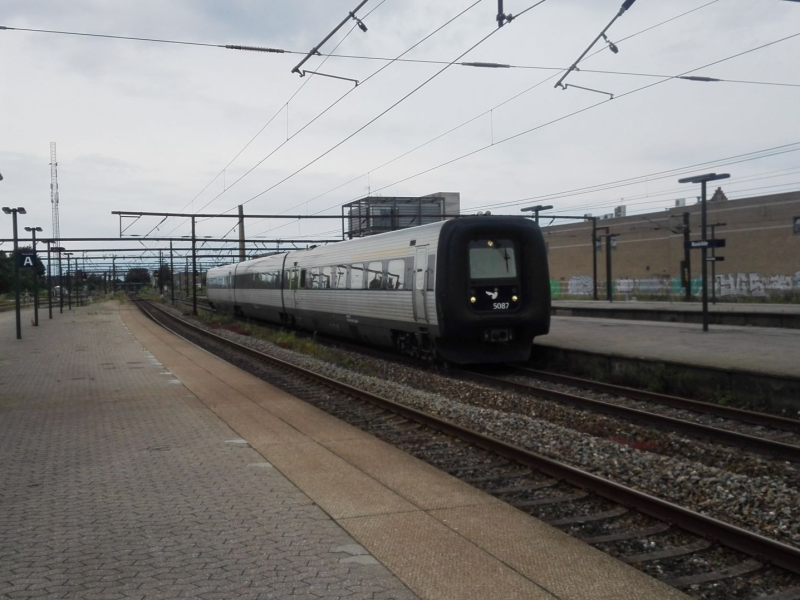 Hier zien we IC 3 5087 het station van Roskilde binnenrijden. De serie IC 3 vertoont veel gelijkenissen met de bovenstaande IR 4, maar het grootste verschil is dat de IC 3 rijdt op diesel en de IR 4 op elektriciteit.