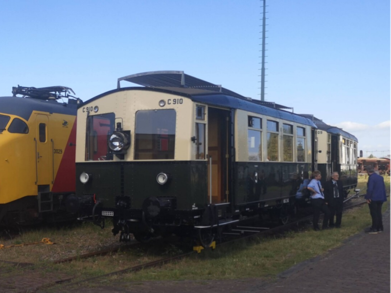 omC 910 en omC 909 van de SGB vergezeld door mP 3029 en Plan V 904 van Stichting 2454 Crew. Van 1927 tot 1947 werden de tramlijnen op Zuid-Beveland geëxploiteerd met de serie omC 901 - 908, waarvan er geen enkele bewaard is. Sinds 2018 rijdt de SGB echter met de zelf gebouwde replica 909, in 2022 gevolgd door de 910.