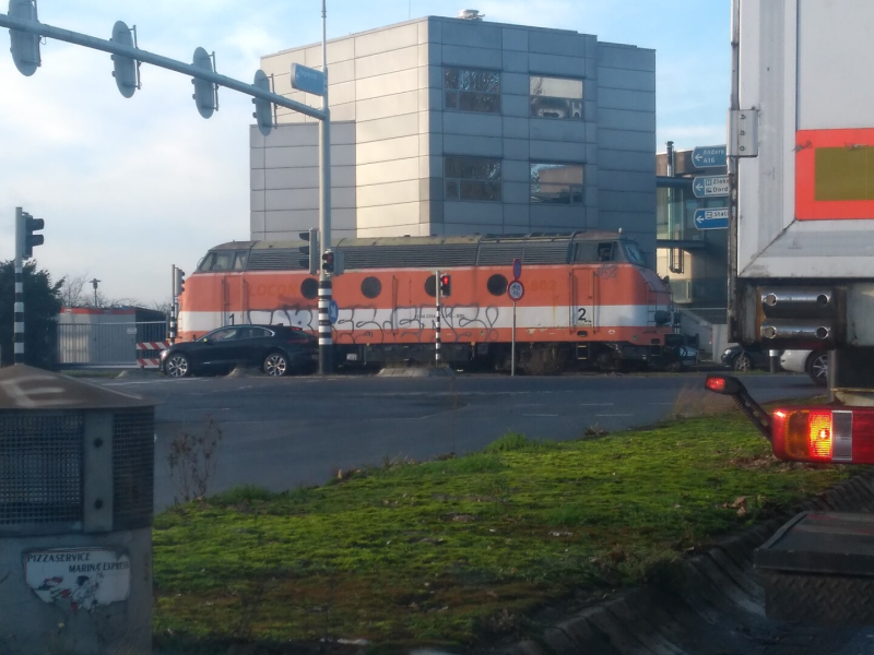 Om het zeehavengebied van Dordrecht bereikbaar te houden voor goederentreinen, ligt er vanaf het emplacement tussen het station en de spoorbrug een stamlijn die langs de Laan der Verenigde Naties naar het industriegebied loopt. Op 31 december 2019 reed ik hier met de auto en kwam ik tot mijn verbazing ex-Locon 9802 tegen. Locon is in 2017 failliet gegaan, waarna de loc weer onder het ACTS-nummer 6702 bij Rail Force One terecht is gekomen en daar als rangeerkracht aan de slag kon gaan.