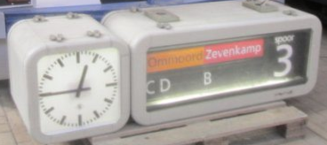 Naast de twee metrostellen die we hierboven zagen bezit Stichting RoMeO ook een oude TBA (treinbestemmingsaanwijzer) die vroeger op station Marconiplein hing. In 2010 is het apparaat weer werkend gekregen. Klik hier voor een filmpje.