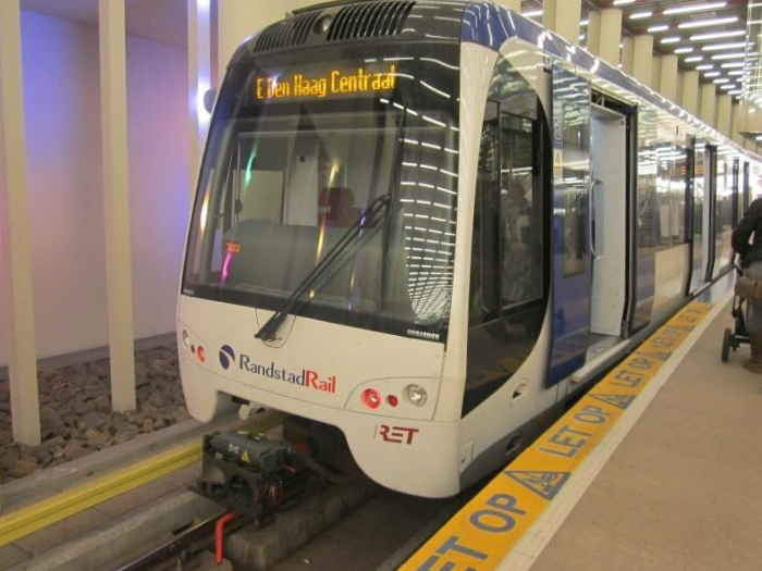 In 2009 zijn de RSG3-stellen ingevoerd op de RandstadRail Erasmuslijn (Hofplein - Den Haag Centraal), maar sinds de koppeling van die lijn met de rest van het metronet duiken ze met enige regelmatig op elke lijn op. De foto toont 5509 op 19 juli 2010 tijdens een stop op het pas geopende station Meijersplein.