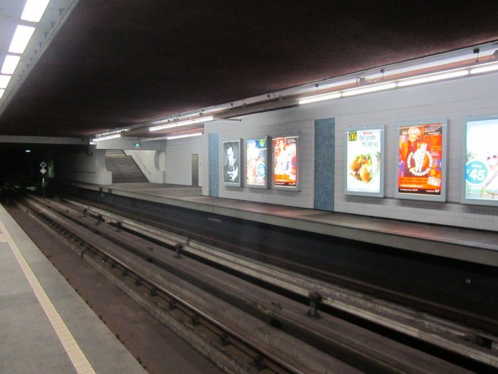 Omdat Marconiplein van 1984 tot 2002 het eindpunt van de Oost-Westlijn/Calandlijn was, is dit station uitgevoerd met een derde spoor voor kerende metro's. Sinds het verlengen van deze lijn via Schiedam en Pernis naar Hoogvliet werd Marconiplein een doorgaand station en verloor het derde spoor haar functie, waardoor sindsdien ook het derde perron verlaten is. De trap in de achtergrond leidt waarschijnlijk naar het RET-kantoor in het stationsgebouw.