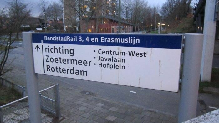Toen ik op 17 december 2011 op station Leidschendam-Voorburg af kwam lopen, zag ik een bord waarop het nog ging over lijn E naar Hofplein, terwijl het tracé naar Rotterdam Centraal al ruim een jaar in gebruik was. Toen ik de achterkant van het bord zag ging ik echter nog verder terug in de tijd: daar ging het nog over de Erasmuslijn.