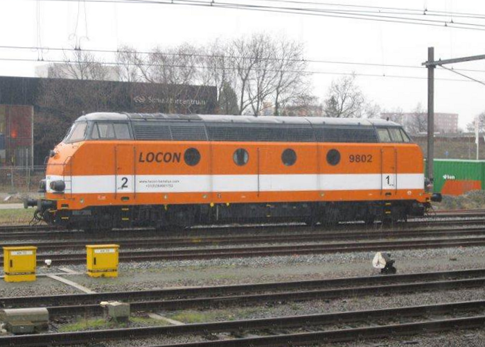In september 2011 stond deze loc nog in ACTS-kleuren en genummerd als 6702 ietsjes verderop hier in Amersfoort langzaam af te takelen, maar op 3 januari 2012 kwam ik de tot 9802 omgedoopte locomotief tegen in gloednieuw Locon-oranje. Bij de NMBS had deze loc het nummer 6325.