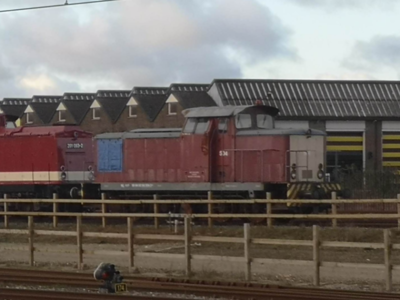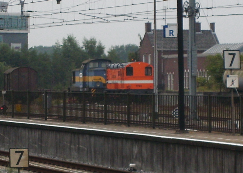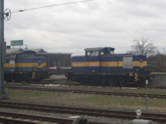 Vanuit een wegrijdende trein kon ik op 3 januari 2012 in Apeldoorn de 503 en 502 van EETC op de foto zetten. De 502 stond hier vanwege de vuiltreinen die ze gedurende 2011 van de VAM in Apeldoorn naar de aansluiting met het hoofdspoor bracht. De 503 was, zoals eerder te lezen viel, door EETC aangewezen als plukloc (en draagt daarom nog het ACTS-logo).