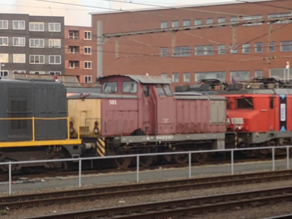 Naast station Amersfoort Centraal trof ik op 8 januari 2021 V60 no. 501 aan. Dit is wederom dezelfde locomotief die we eerder op deze pagina bij de SSN zagen, al heeft ze de ACTS-kleuren die gespaard leken te blijven uiteindelijk alsnog ingeleverd voor het geel-rood van EETC.  Een klein stukje verderop was ook de 504 nog te zien. Dit is het enige exemplaar van de Nederlandse V60'en die niet voor ACTS gereden heeft.