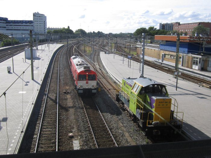 Nadat ik tien jaar lang geen enkele Class 66 op de foto had gezet en eerlijk gezegd dacht dat ze verdwenen waren uit ons land, trof ik op 25 maart 2023 twee exemplaren aan te Rotterdam Waalhaven. Links de 653-07 van onbekende vervoerder, rechts een van de drie machines van RRF.