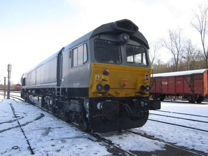 Op 23 maart 2013 was ik weer eens bij de SSN, omdat loc 2225 van de SMMR hier te gast was. Nadat ik de 2225 al op de foto had gezet, ging één van de deuren van de loods open. En, je raadt het niet, er kwam wederom een Class 66 tevoorschijn.