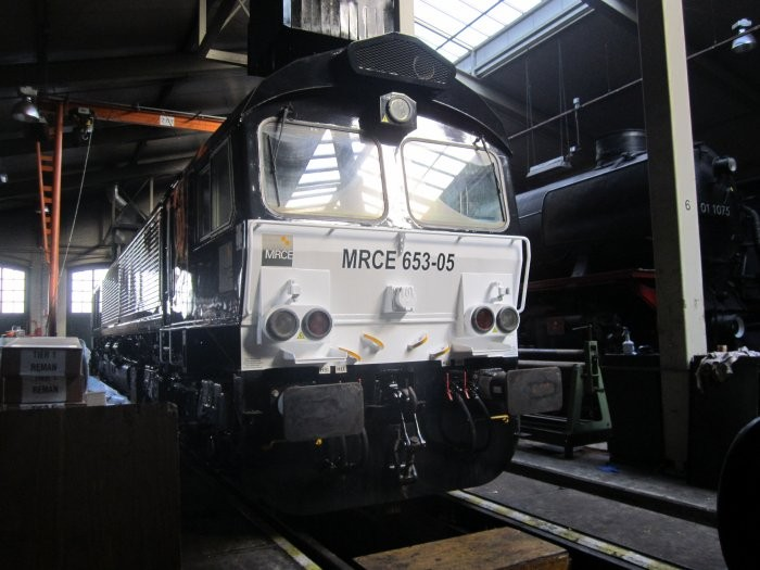 Het was overigens geen uitzondering om een Class 66 tegen te komen bij het Stoomdepot. Op 5 november 2011 stuitte ik op deze glanzende 653-05 van MRCE in de loods van de SSN.