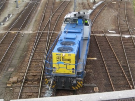 Tweemaal de 1202 van ERS Railways, links op 30 maart 2008 op de Kijfhoek en rechts op 25 januari 2012 op het emplacement Waalhaven.