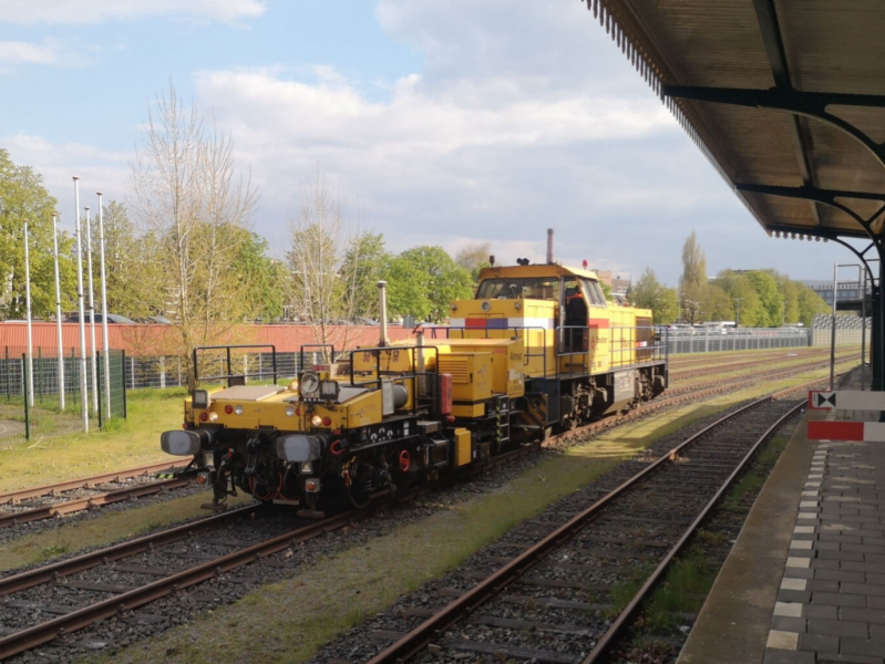 Op 20 april 2023 is de 303001 'Carin' van Strukton samen met meetrijtuig SIM-12 'Annet' bezig met het meten van de wissels naar de in onbruik geraakte sporen ten zuidoosten van station 's-Hertogenbosch.