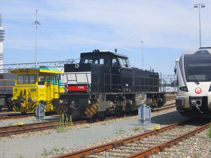 Loc 7110 van onbekende eigenaar staat op 12 augustus 2012 op het emplacement Waalhaven.