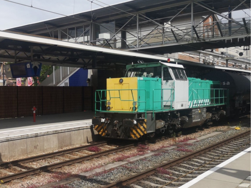 De 2201 van Lineas komt op 12 juni 2024 met een lading tankwagons door station Dordrecht.