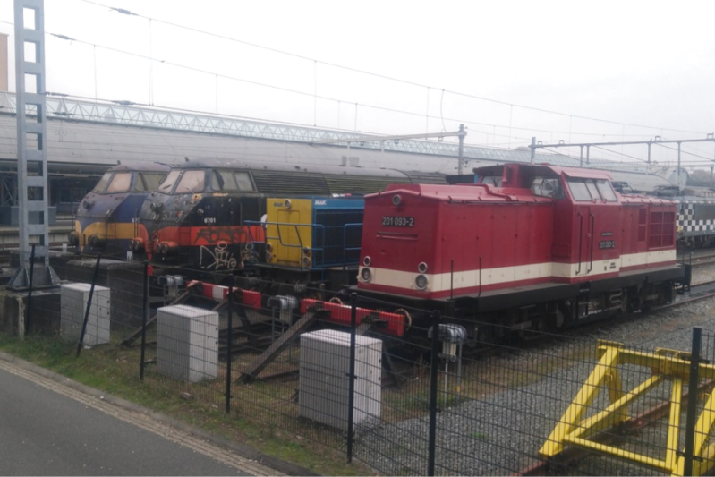 Op 15 november 2019 trof ik naast station Amersfoort dit bonte gezelschap aan, bestaande uit de HLR 62en 6705 en 6701, een onbekende MaK G 1206 en de 201 039-2. Na in 1995 bij de VSM terecht te zijn gekomen, waar het oude nummer uit de DDR-tijd (V100 093) terugkeerde, kwam de loc in 2008 onder datzelfde nummer bij Railpro terecht. Sinds 2018 rijdt de loc voor Railexperts, waarbij ze is teruggebracht naar de DDR-kleuren, maar verrassend genoeg wel het locnummer van ná de val van de Muur kreeg.