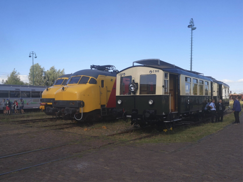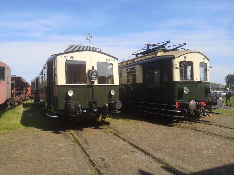 De serie omC 901 - 908 was sepciaal gebouwd voor de destijds pas aangelegde tramlijnen op Zuid-Beveland. De Stoomtrein Goes - Borssele (SGB) rijdt over een van deze lijnen en heeft daarom al lange tijd de droom gehad om een exemplaar van dit type na te bouwen. In 2018 kwam omC 909 gereed, gebouwd op basis van een Uerdinger Schienenbus (die we helemaal links in de achtergrond zien), in 2022 gevolgd door de 910. Op 27 mei 2022, tijdens het jaarlijkse evenement Sporen naar het Verleden in Goes, werden beide Ome Ceesjes tentoongesteld naast mP 3029 en Plan V 904.