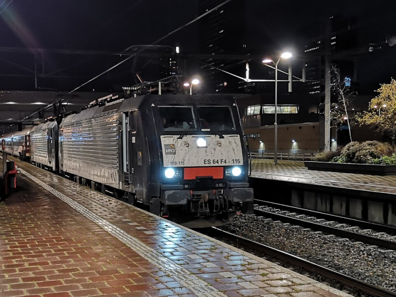 In de avond van 9 december 2021 staan de 189 115 en 189 105 van MRCE op station Rotterdam Centraal klaar met de nachttrein naar Praag van GreenCityTrip.
