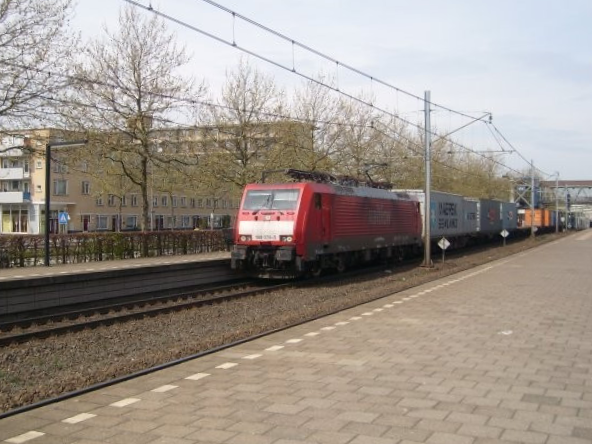 Een 189 van Railion komt op 3 september 2010 met een containertrein door Rotterdam Zuid.