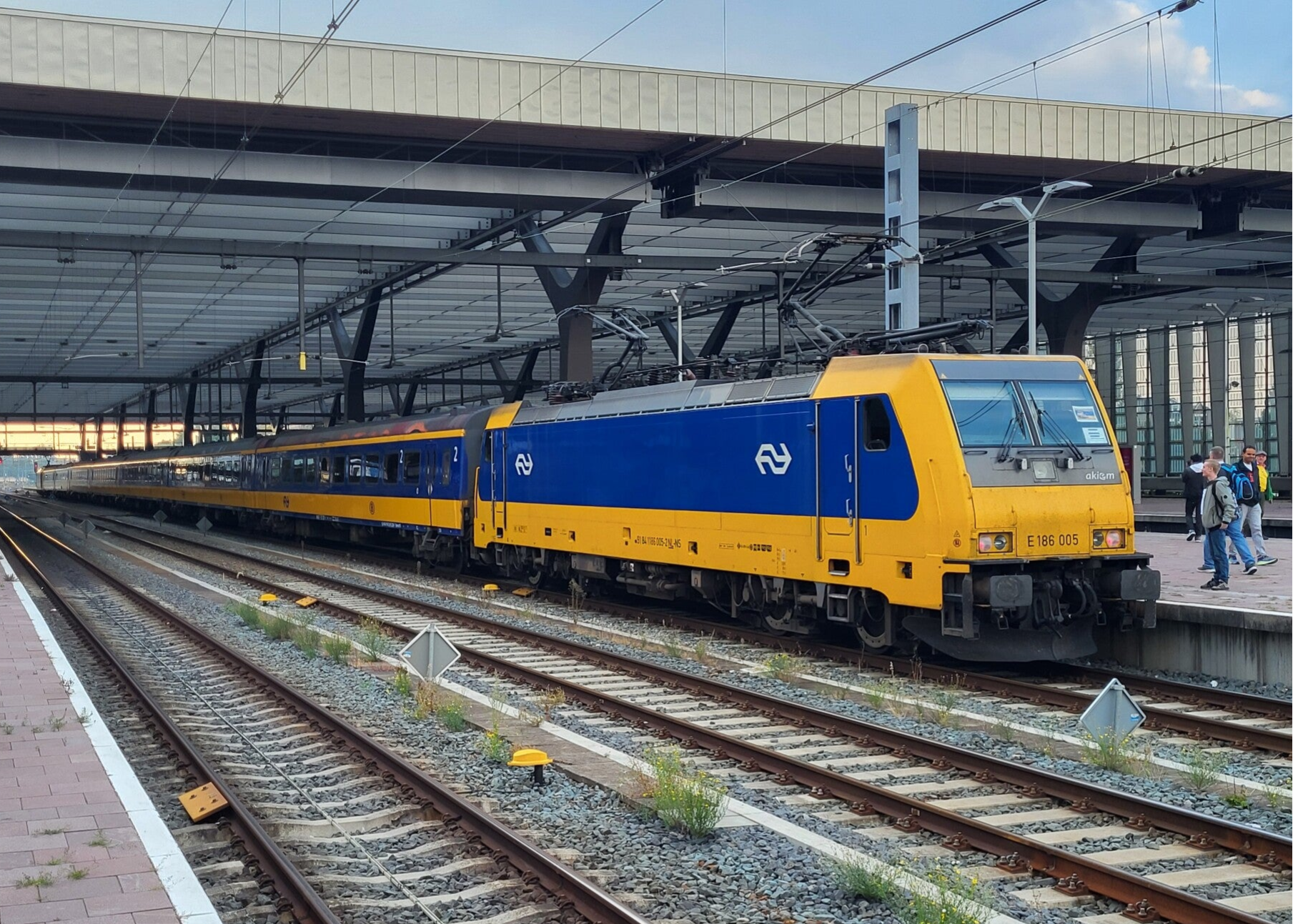 Vanwege het Fyra-debakel met de V250 heeft NS in 2013 een nieuwe lading 186'en besteld, waarvan de eerste in 2014 in dienst kwam. Vanwege het opheffen van het hele merk Fyra werden deze locs in het normale NS blauw/geel gestoken, waarna de al aanwezige rode 186en deze kleuren ook kregen. We zien hier loc 186 001, de eerste van deze nieuwe serie en tevens de eerste 186, op 3 april 2019 in Breda voorop de intercity naar Amsterdam Centraal.