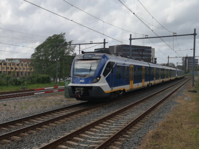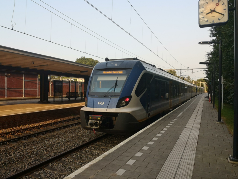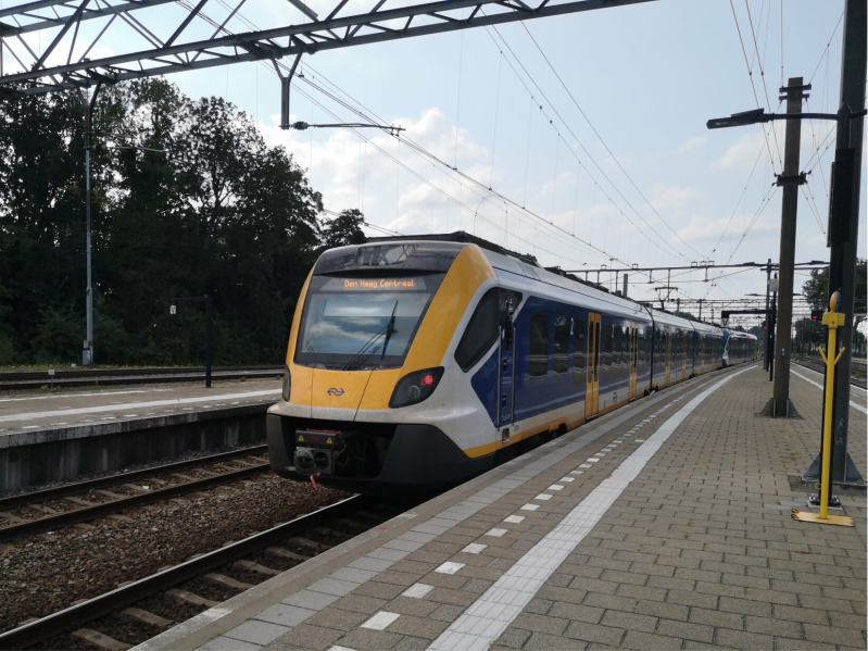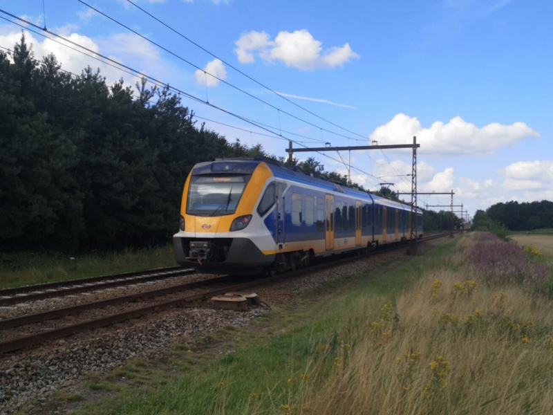 Aan de voorkant van deze trein reed de 3010, die we hier zien tijdens een stop in Soestdijk. Dit is een driewagenstel uit de deelserie SNG-2 die sinds 2020 op het spoor te zien is.