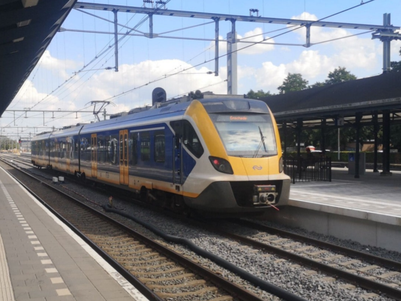 Op 21 augustus 2023 vertrekt treinstel 3038 van station Apeldoorn als sprinter naar Enschede.