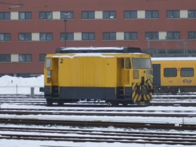 Een rangeerrobot op het terrein van de werkplaats in Zwolle, 23 december 2009. Deze radiografisch bestuurbare locomotoren hebben een opklapbare koppeling waardoor ze zowel met ouderwetse schroefkoppelingen als automatische Scharfenbergkoppelingen kunnen omgaan.