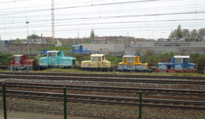 Tussen station Rotterdam Zuid en het Varkenoordseviaduct bevond zich een kleine werkplaats van Shunter, voor het bedienen van de nog bestaande sporen van emplacement Rotterdam Feijenoord. Op 3 september 2010 maakte ik deze foto van het bonte gezelschap - vermoedelijk Duitse - rangeerlocjes dat hier vaak aan te treffen was.