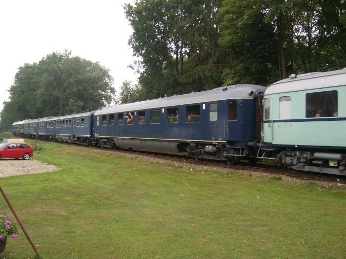 Wat op de foto hierboven misschien al opviel, is dat er aan de linkerkant van de kop geen blauw-geel te zien is, maar alleen blauw. Dit komt omdat men al bezig was met het terugbrengen van dit rijtuig naar de Benelux-kleurstelling, waar ze van 1973 tot 1987 in te zien is geweest.