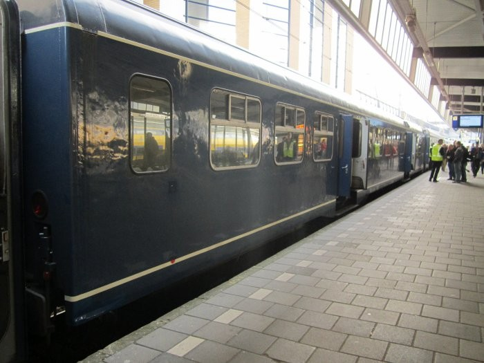 Rijtuig 4118 van het Spoorwegmuseum in de feesttrein van de 1200'en-reünie op 12 november 2011. Hier is goed te zien de dit rijtuig is beschadigd tijdens een rangeerbeweging: in de linker onderhoek zit een deuk en bij het rode puntje mist een handgreep.