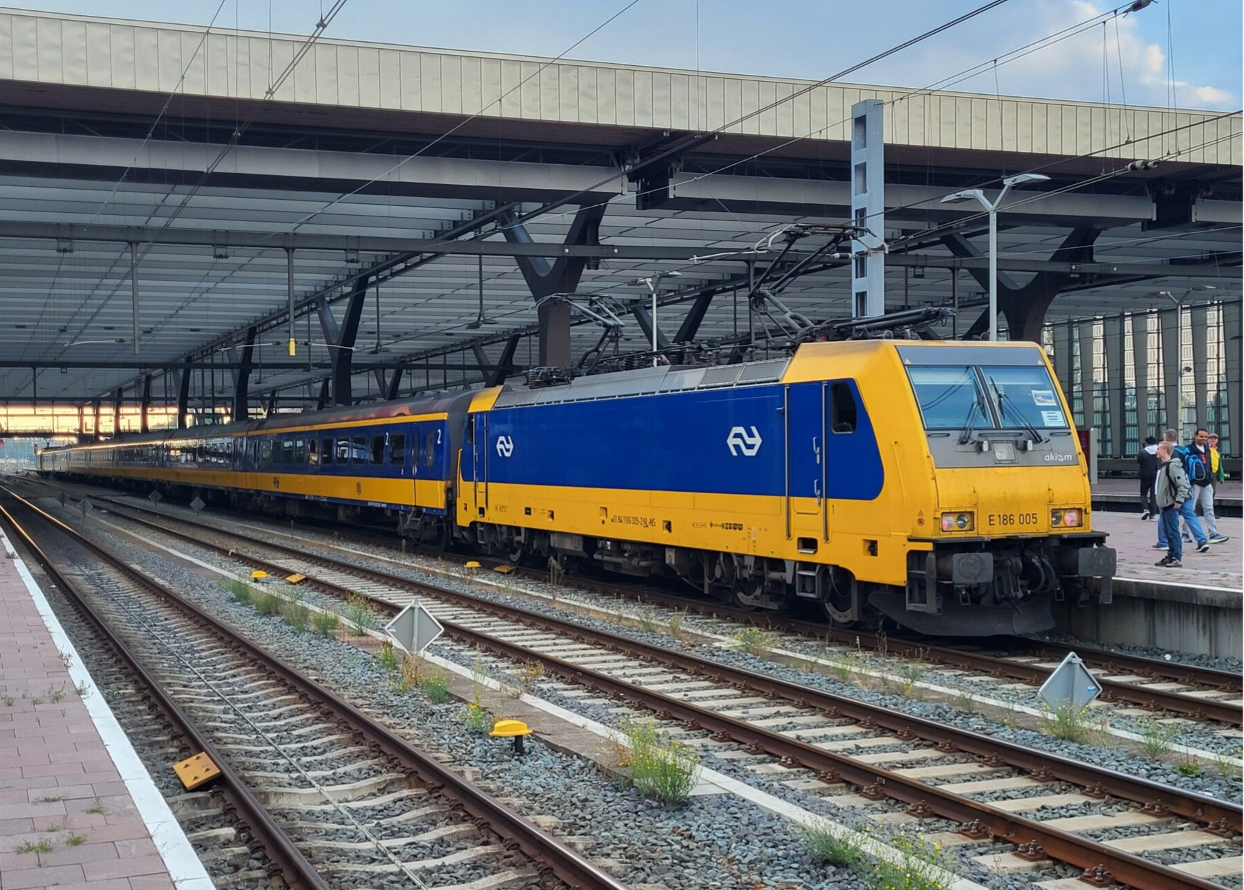 Op 27 september 2025 vond de officiële afscheidsrit van de ICRm en daarmee ook van de NS 186 plaats. Alsof het zo bedoeld was, komt hiermee na precies 186 jaar een einde aan de inzet van getrokken reizigerstreinen in ons land. Omdat de ICRm+186 ook geschikt was voor het Belgische spoor en de combinatie jarenlang te zien was tussen Amsterdam en Brussel, werd het een uitgebreide rit van Amsterdam via Maastricht, Luik, Namen, Schaarbeek en Rotterdam naar het Spoorwegmuseum. We zien de trein hier op station Rotterdam Centraal, met loc 186 005 achterop.
