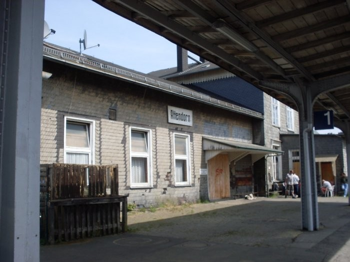 Het vervallen stationsgebouwtje van het Duitse station Attendorn.