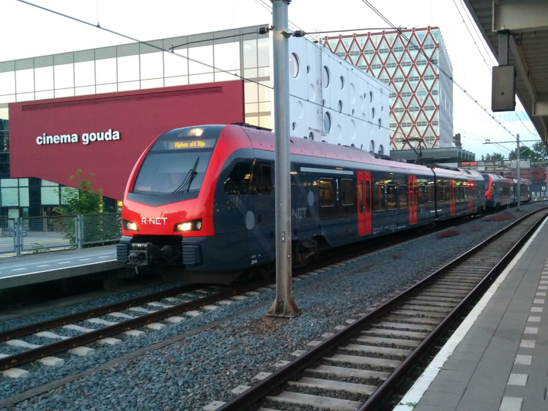 Op 31 mei 2018 kwam ik FLIRT-stellen 2011 en 2013 van Abellio tegen op station Gouda. De dienst Gouda - Alphen a/d Rijn wordt sinds 2016 uitgevoerd met deze treinstellen. De treinen maken nu overigens gebruik van het nieuw aangelegde perron 11, spoor 9 is sinds 2020 verdwenen.