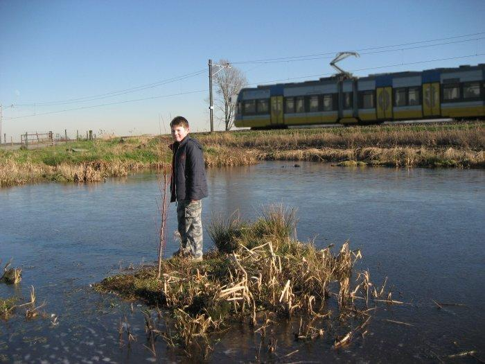 Creatief met Paint Shop Pro: Uw destijds 9-jarige webmaster en een A32-tram in een bevroren landschap nabij Alphen a/d Rijn. Dat de pantograaf de verkeerde draad aanraakt negeren we maar even.