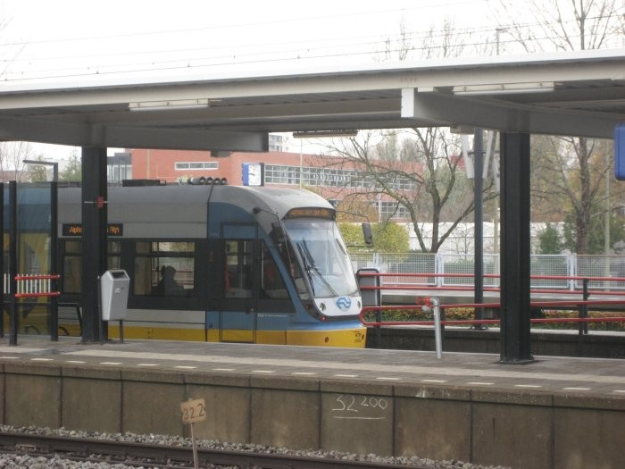 Op 7 november 2009 staat een van de zes A32-trams langs het verlaagde perron 9 van station Gouda.