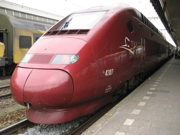 Thalys 4307 maakt onderweg naar Parijs een stop langs perron 1, 15 maart 2008.