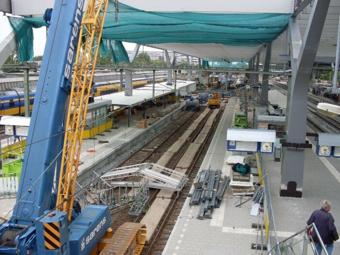 Er werd begonnen met het bouwen van de nieuwe overkapping bij perron 3/4, tijdens het maken van deze foto's werd er gewerkt aan de kap boven sporen 6 en 7.