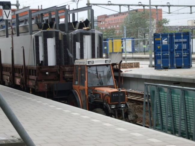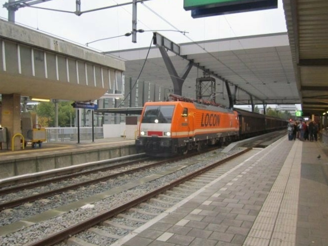 Op 21 oktober 2012 komt loc 189-821 van Locon met een goederentrein over spoor 15 gereden, terwijl er eindelijk wordt gewerkt aan de kap boven de sporen 15 en 16 en tegelijkertijd ook de achterwand van het station.