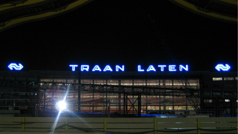 In 2008 is het stationsgebouw van Van Ravensteyn gesloopt, waarop sinds 2006 een aantal letters van "Centraal Station" de woorden "traan laten" vormden, verwijzend naar de sloop die eraan zat te komen. We zien deze letters hier op 3 november 2007 van onder het tijdelijke afdak van de metro-ingang.