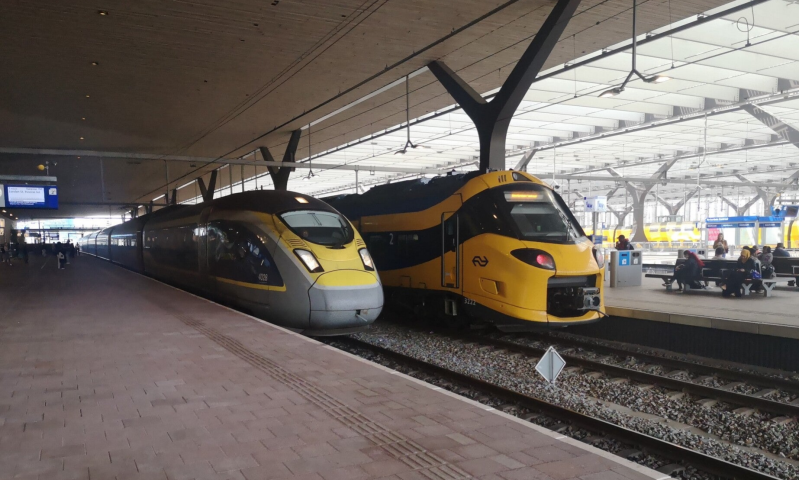 In 2023 begon de reguliere inzet van de ICNG met enkele ritten tussen Amsterdam en Rotterdam. Op 21 mei 2023 staat treinstel 3222 op spoor 3 van Rotterdam Centraal te wachten op vertrek naar Amsterdam, terwijl Eurostar 4028 richting Londen net het station binnenrijdt.
