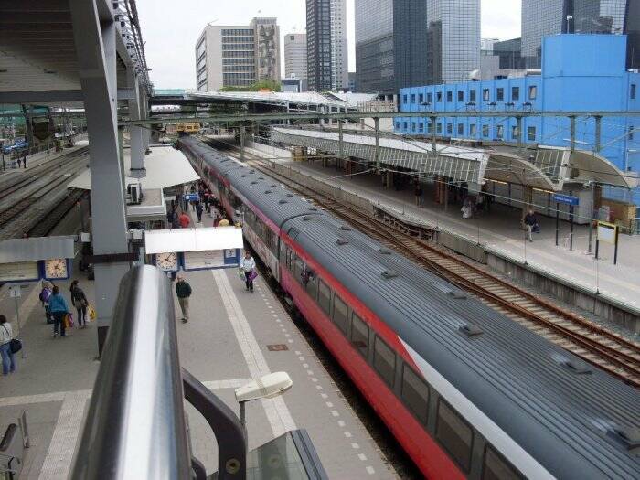 Hoewel de zijwanden bij de sporen 1 en 16 op 17 augustus 2012 nog niet geplaatst waren, zou er vanaf dit moment niet veel meer veranderen aan het uitzicht dat men heeft vanaf de voetgangersbrug.