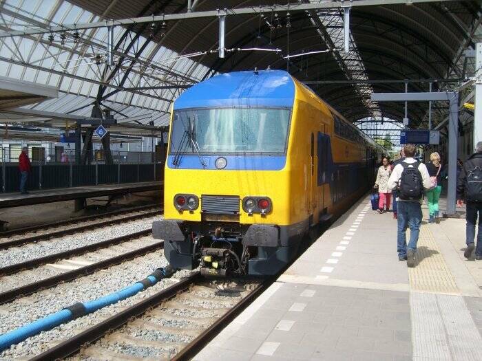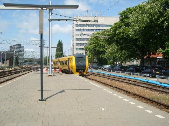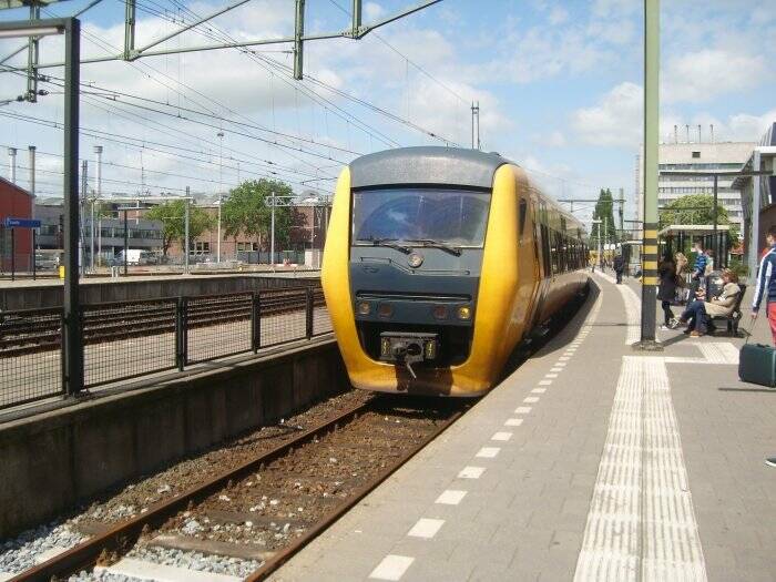 DDZ 7521 staat klaar langs perron 1 om dadelijk te vertrekken als sprinter naar Utrecht Centraal.