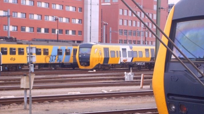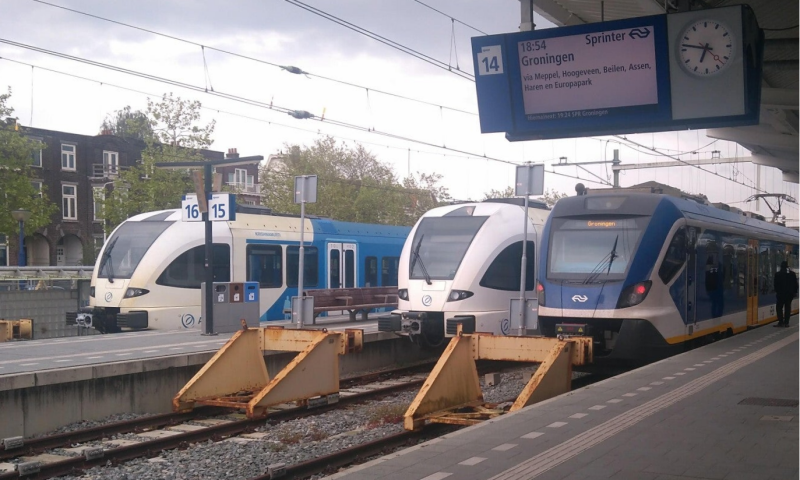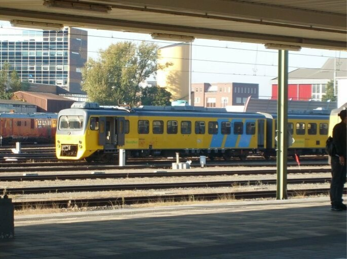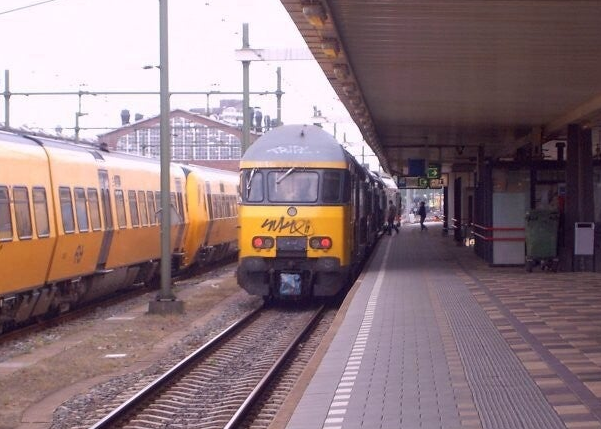 Ook Plan V 940 reed een van de laatste NS-diensten op deze lijn. We zien het treinstel hier naast ICMm 4039, die wacht op vertrek naar Groningen.
