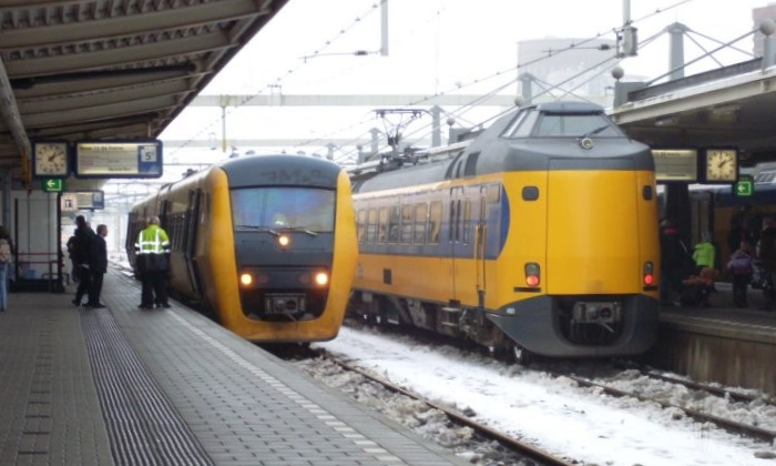 Een Buffel als stoptrein naar Nijverdal West naast een ICMm als intercity naar Leeuwarden. Met het ingaan van de dienstregeling van 2010 eerder die maand is de treindienst Enschede - Zwolle opgeknipt in Enschede - Nijverdal en Zwolle - Nijverdal West, vanwege de bouw van een gecombineerde spoor- en autotunnel in Nijverdal.