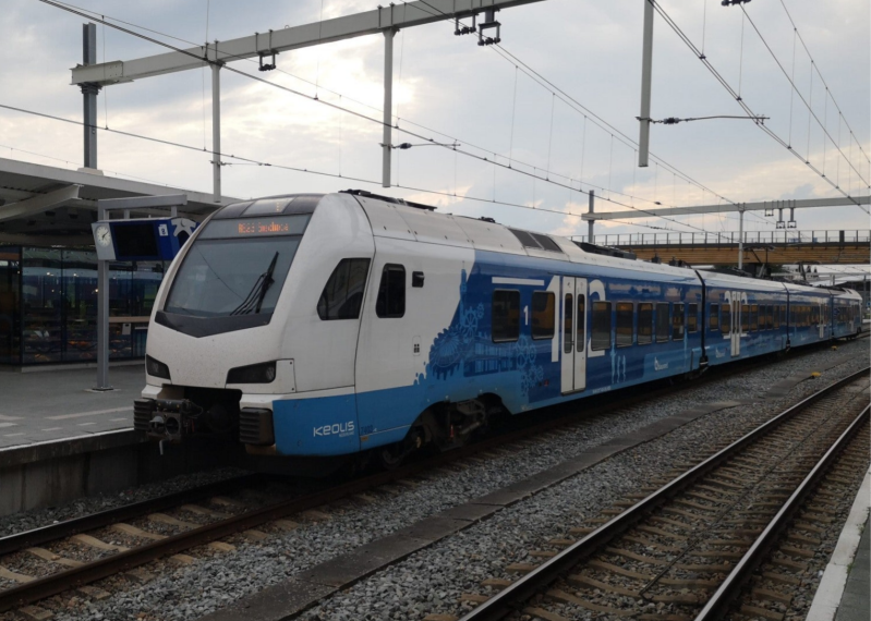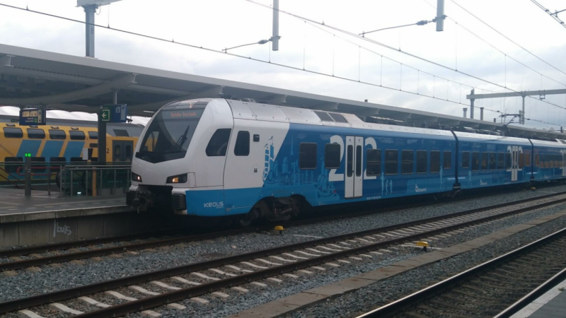 Driedelige FLIRT 3 no. 7305 van Keolis op spoor 9, klaar voor vertrek als stoptrein naar Enschede. De treindiensten van Keolis (voorheen Syntus) in de provincie Overijssel maken sinds eind 2017 deel uit van de merknaam Blauwnet, waar ook de door Arriva uitgevoerde diensten Zwolle - Emmen en Almelo - Hardenberg onder vallen.