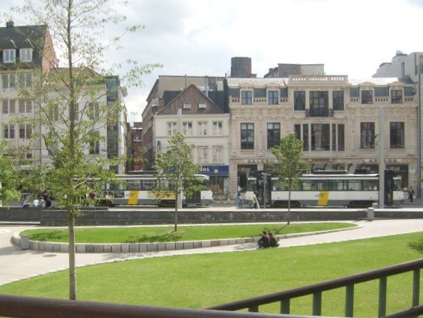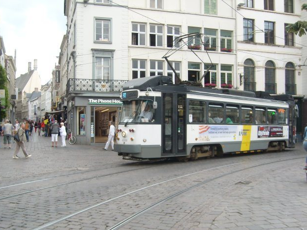 Midden in het centrum staat het uit de 10e eeuw stammende kasteel Gravensteen. Te midden van de oude huisjes en het kasteel ligt een straat met daarin de tramrails van lijn 4, waar op deze foto PCC 6218 rijdt.