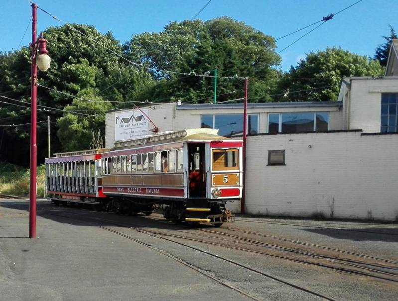 Op 29 juli 2016 bracht ik voor het eerst een bezoekje aan de Manx Electric Railway. Op de foto zien we de uit 1894 stammende motorwagen 5 met een open bijwagen het eindstation van de lijn in Ramsey binnenrijden, vanaf waar, na het kopmaken, de terugweg weer werd ingezet naar Douglas.
