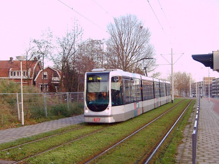 Op 10 december 2006 nadert Citadis-tramstel 2043 de halte Antonius IJsselmonde op lijn 23 naar Holy. Het TramPlus-concept was destijds nog tamelijk nieuw; hoewel de Erasmusbrug er al 10 jaar lag, was de IJsselmondelijn waar de 2043 hier op rijdt ongeveer 2,5 jaar in gebruik en de tak naar Vlaardingen-Holy nog maar een jaar. Let trouwens op de schuine banen op de zijkant van de tram, deze zijn verkeerd om aangebracht.