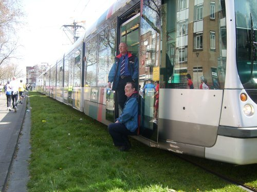 Op 8 juni 2020 reed ik als conducteur mee met de bevrijdingstram van Stichting RoMeO, waarmee werd herdacht dat precies 75 jaar eerder de trams voor het eerst weer gingen rijden na de bevrijding. Vanwege het coronavirus moest het helaas in een uitgeklede vorm. Er reden geen passagiers mee, maar ter compensatie werd er wel gereden naar plekken waar normaal gesproken nooit historische trams komen. Zo belandde de bevrijdingstram, bestaande uit Vierasser 556 en bijwagen 1355, in de keerlus aan de Kromme Zandweg naast Citadis 2013 op een vanwege werkzaamheden ingekorte lijn 2 naar Lombardijen.