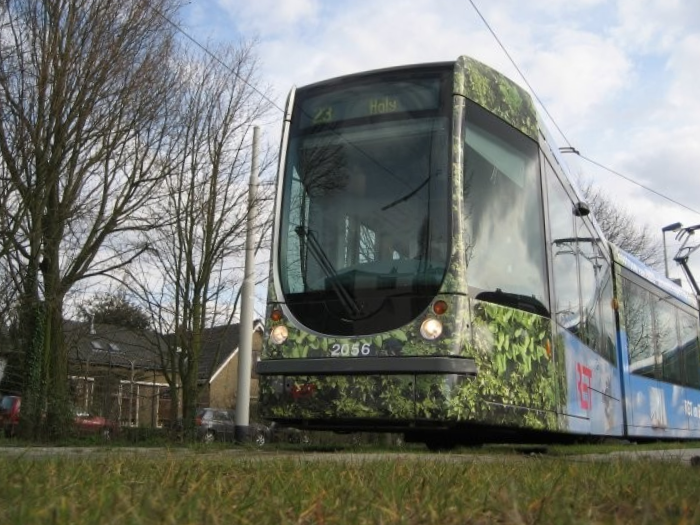 De Rotterdamse Citadis reed voor het eerst in 2003. De trams zijn aangeschaft in het kader van TramPlus, een project voor hoogwaardig tramvervoer. De gelijkvloerse Citadissen werden dan ook eerst ingevoerd op de TramPlus-lijnen, waaronder lijn 23. We zien de 2056 met totaalreclame van Eneco, ook in de Beverwaard. Dit is overigens het meest oostelijke stukje van het Rotterdamse tramnet, de huizen in de achtergrond staan in het dorp Bolnes in de gemeente Ridderkerk.